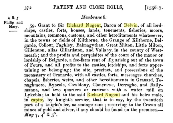 1556-57 59. Grant to Sir Richard Nugent, Baron of